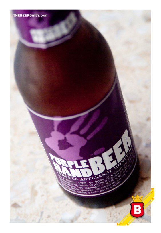 Esta cerveza me la encontré en un supermercado local y al recogí porque su etiqueta realmente me llamó la atención, su diseño y especialmente su color morado, muy diferente  de lo que hay usualmente en los refrigeradores comunes, más no sabía de lo que se trataba o a quien iba dirigida esta peculiar cerveza Purple Hand, su etiqueta es muy distante de lo que estamos acostumbrados a ver en cervezas mexicanas.