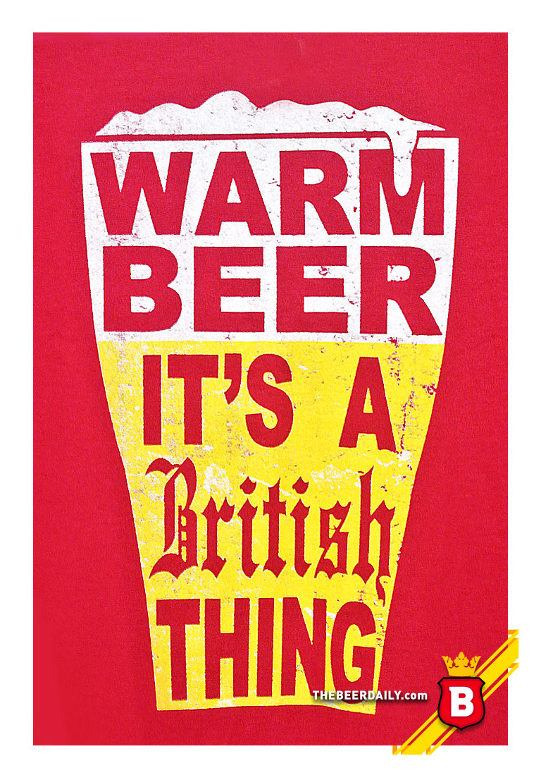 Un buen amigo que vive en USA nos compartió esta imagen de una t-shirt que hace alusión a la cerveza de los británicos y su gusto por tomarla a cierta temperatura, muy diferente de cómo bebe el americano promedio (y el mexicano promedio también) sus cervezas: bastante heladas; se nota que la playera fue diseñada por alguien que no es inglés, galés, escocés o irlandés. En fin ahí les dejamos esta imagen, que les caerá mal a algunos y bien a otros.